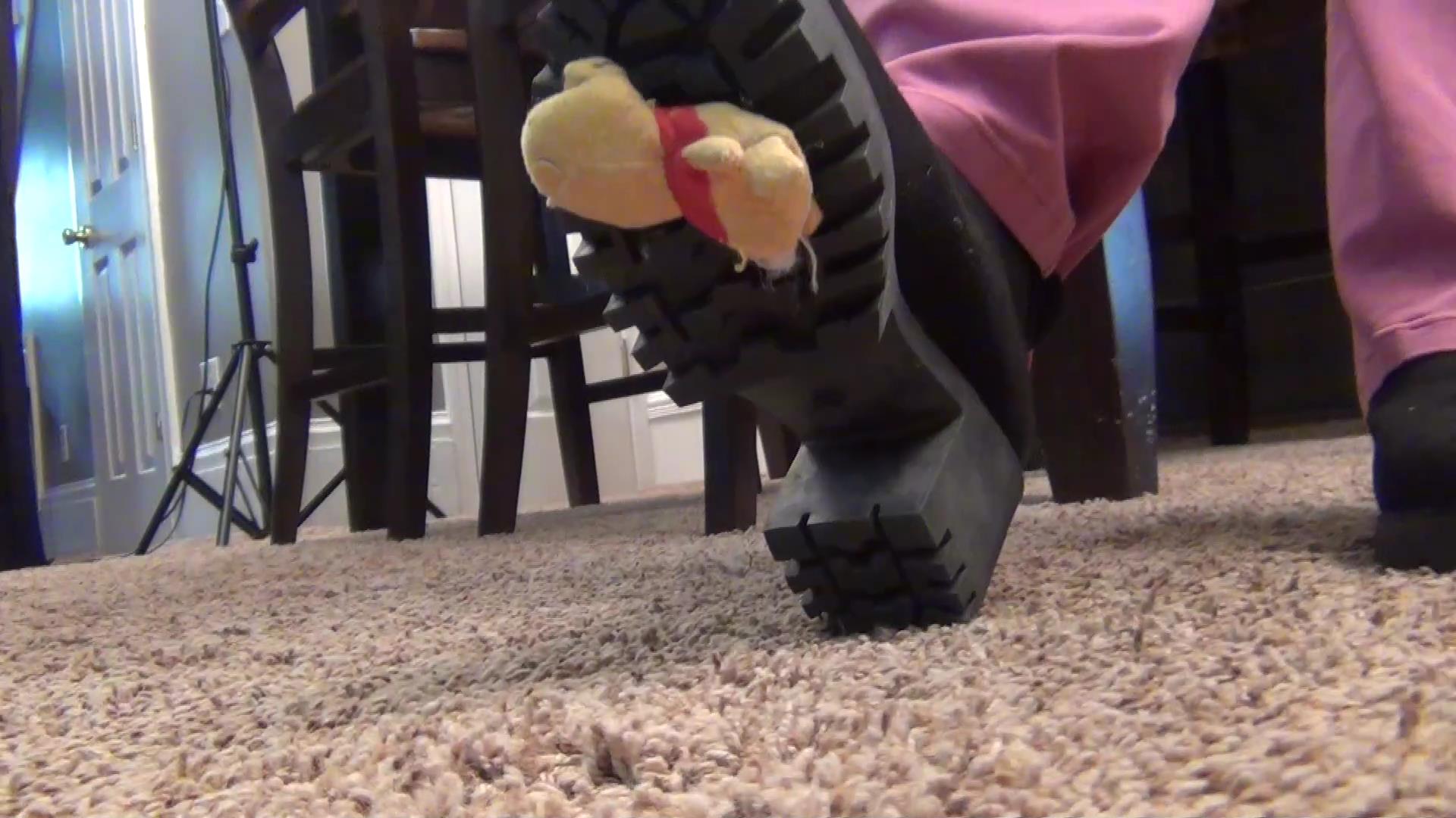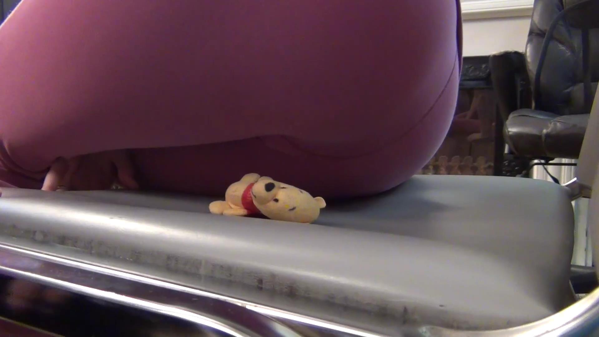 Makayla and Chanell come walking in with Pooh. Makayla wants to show Chanell how Mr. Pooh is really done! She thinks Chanell is being to nice to him, she wants her to be hard on him like she is! First she gives her stinky breath to him letting Chanell do the same! Makayla then lays him down on the chair and starts bouncing and slamming there ass down on him , hard! Making him flat! Suddenly Chanell starts surprising Makayla, shes finally being hard on Mr. Pooh! They then put him on the floor as they start using there black heavy boots, to stomp on him over and over again, destroying him making him almost flat like paper!