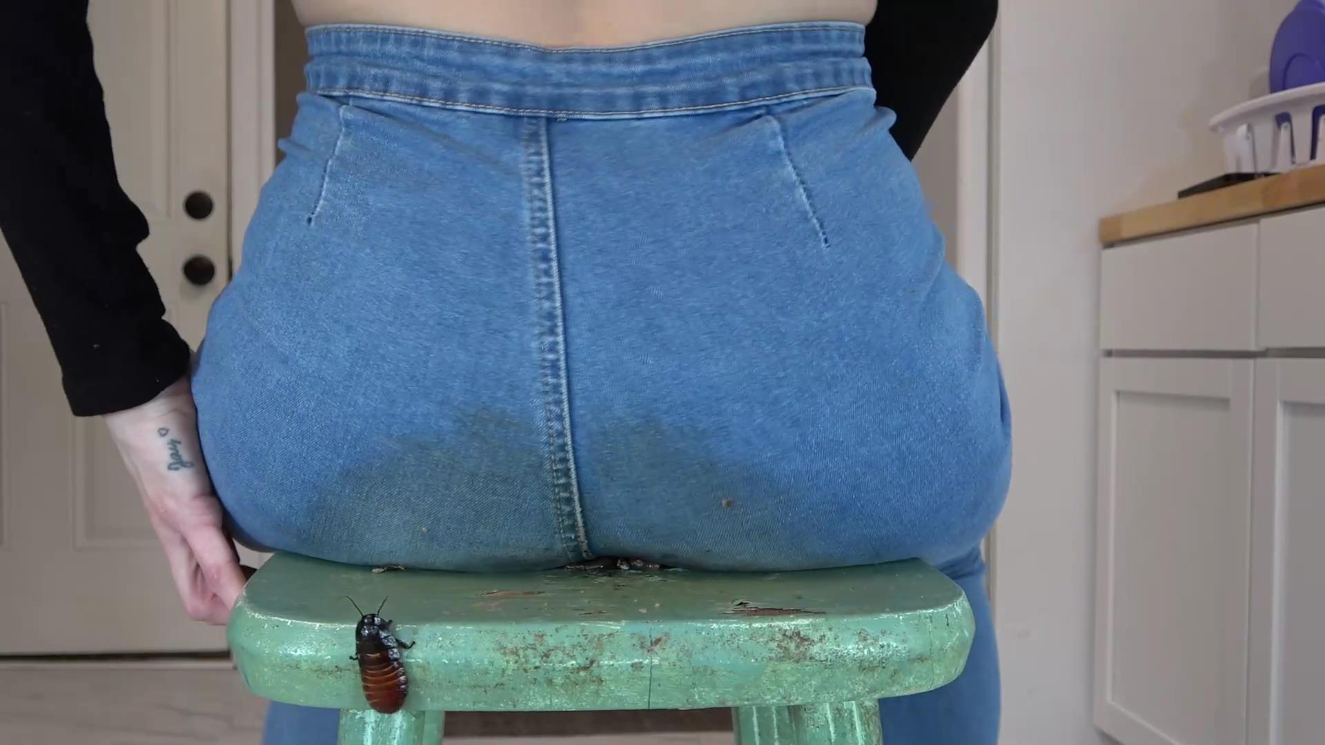 Makena is in the kitchen and has goldies, worms, cricks, and hissing roach. Today she is wearing her tight blue jeans and has her stool in the middle of the kitchen floor. Today she is wanting to sit down over and over on her victims with her jeaned ass. Makena loves sitting and bouncing down hard on her bugs, making them squirt under her! Makena occasionally pulls her jeans down and uses her pipet to blow air into her tight bare ass while she farts on her victims before squishing them flat beneath her! Watch Makena sit and bounce on her victims over and over with her jeaned ass! 'PC'