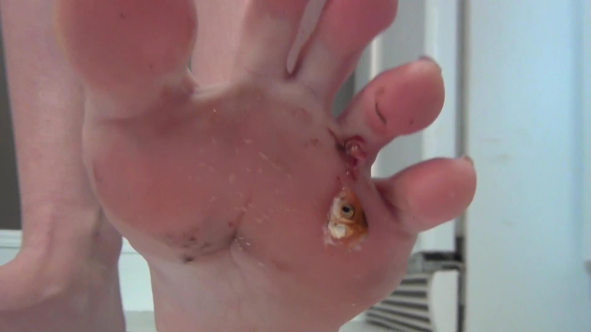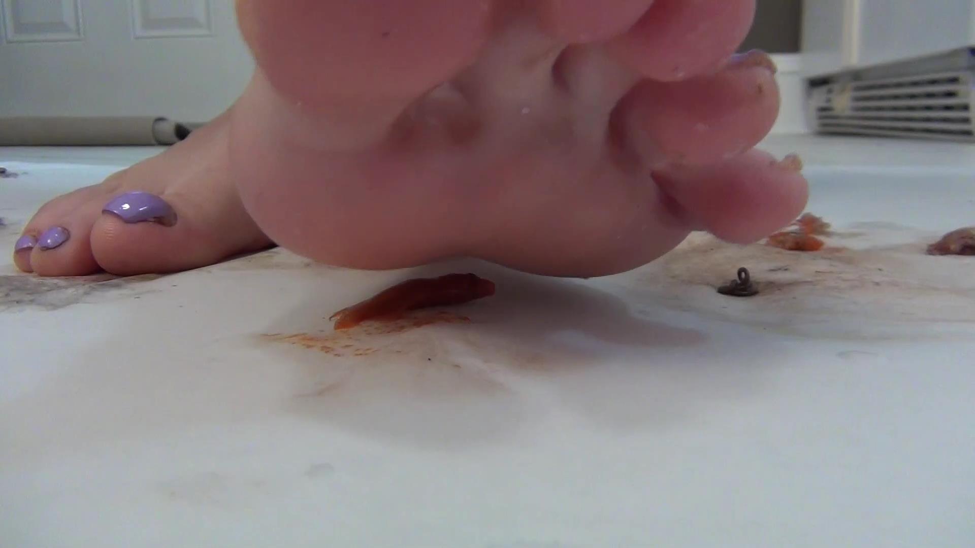 Addy is on the glass table ready to blow off some steam!!! She crushes the guts right out of the tiny cricks and fishies. She has her stockings on and even slips on some flats when she crushes some goldies, but Addy wants to feel the wet release under her soles!!!