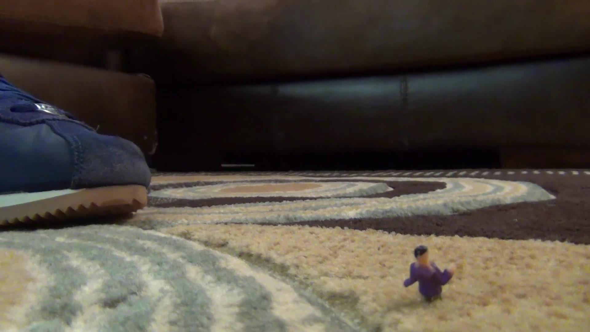 Pink just got home from a long day and walks in on her boyfriend with another women! They both have the shrinking virus, so they're extremely tiny! Pink is a giant and he was lucky to have a women as gigantic as she is! And they're doing it on her couch?! Pink is pissed, she tries to calm herself but instead of destroying their tiny bodies right then and there she picks her cheating ass boyfriend and his bitch homewrecker up and tapes them to her big stinky feet! She puts her shoes back on her bare feet with them still stuck. Later on she gets back and tortures them! Will they get away?! Watch what the goddess, giantess Pink will do to her cheating bastard of a husband and his whore homewrecker!?