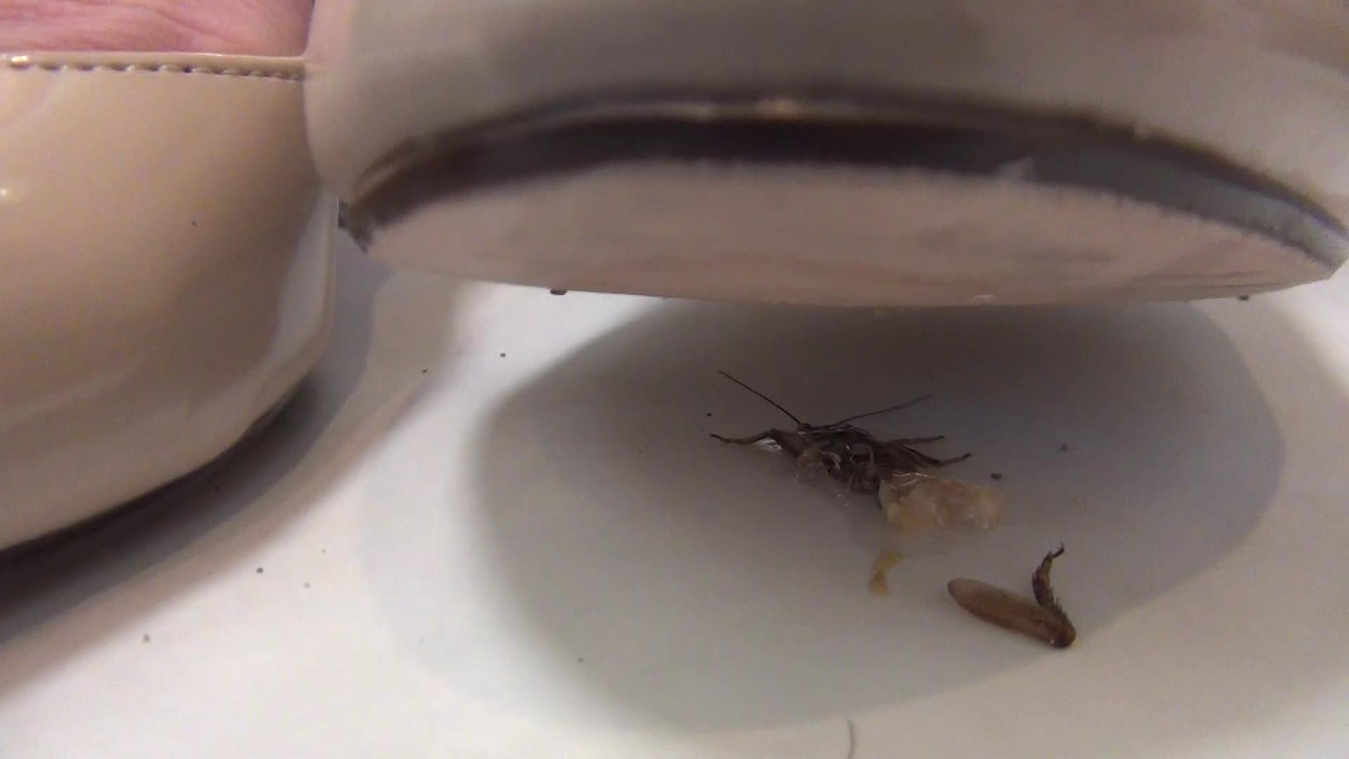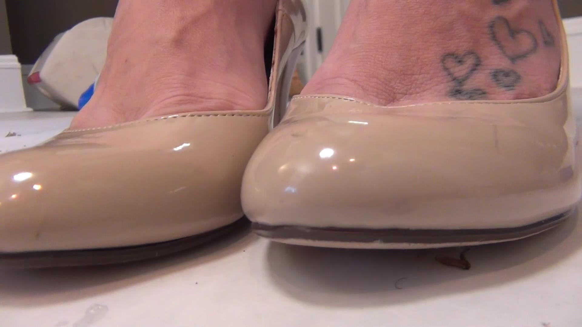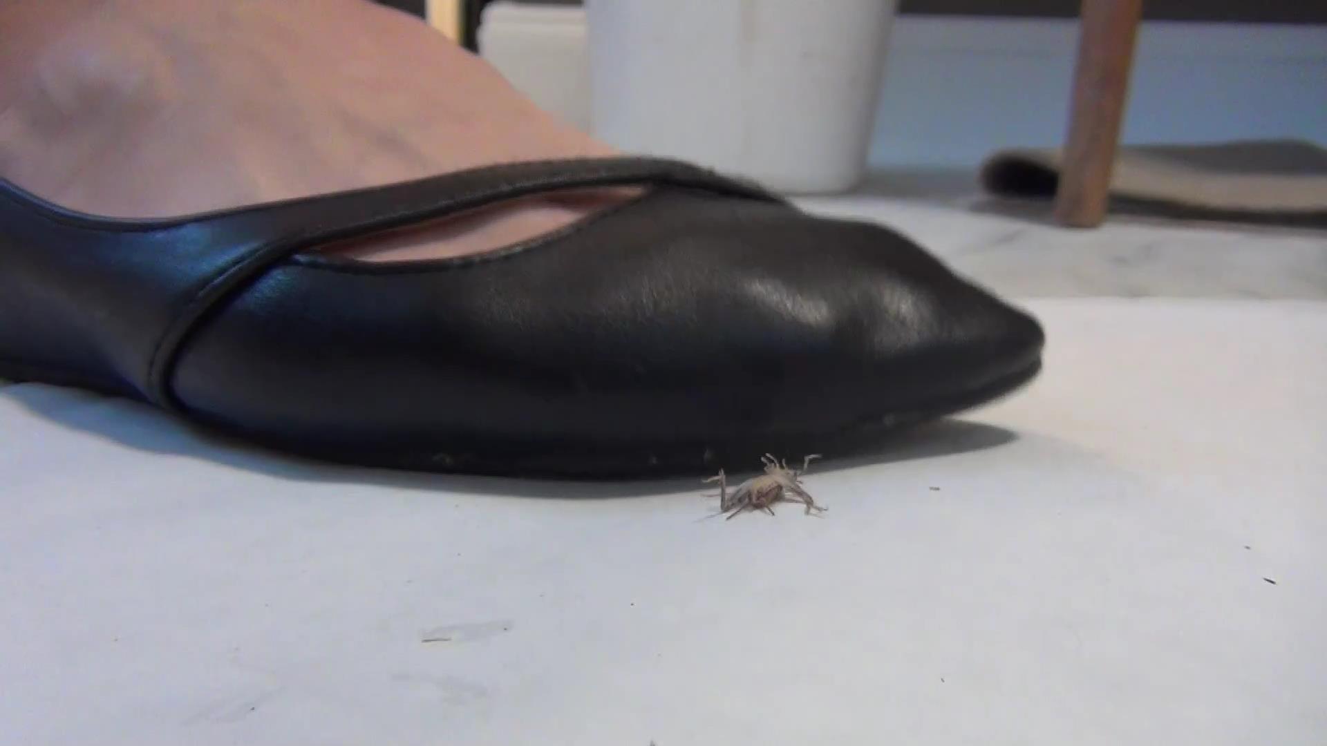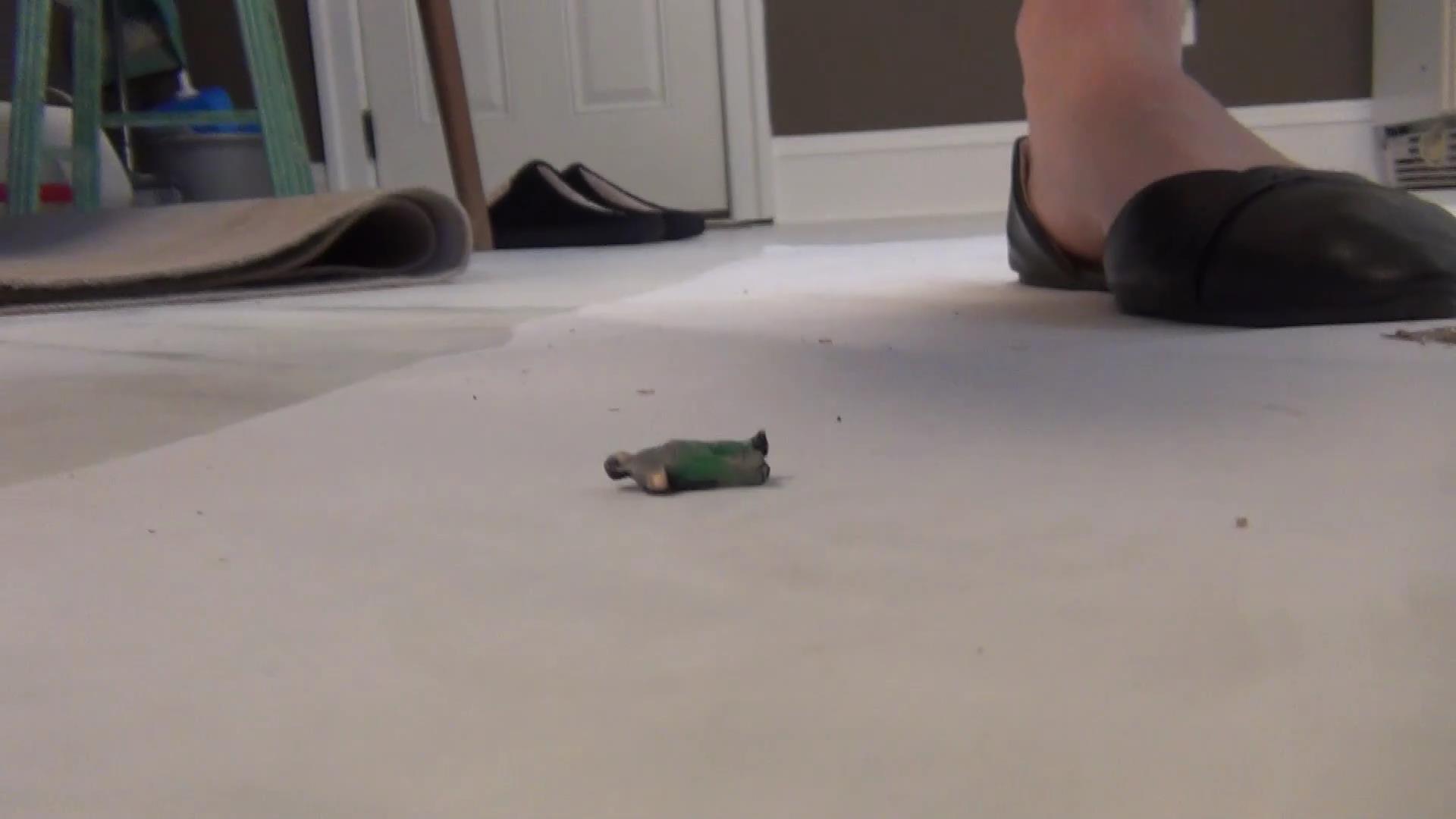 Kristen walks in the kitchen, as she's talking on the phone with a friend. She is completely unaware about the cricks and little man on the floor which have got shrunk! Little does Kristen know that her two step sons have shrunk themselves and is surrounded by cricks stuck on glue traps! Kristen walks up and finds a crick stuck on one of the traps as she squishes it flat with her thin soled sandals totally unaware of one of her step sons standing behind the crick! Kristen then goes to the counter and knocks one of the cricks off and it lands in her heels, Kristen puts her heels on unaware she just smushed the crick inside! Kristen then gets more cricks in the glue traps with her heels! Little does Kristen know that one of her step sons has got stuck on one of her bare feet, he is lodged between her wrinkles! Kristen then calls a bug exterminator to get rid of her problem but little does she know that one of her step sons is stuck to her stinky foot and the other just got stepped on by her heels which caused him to get stuck to the bottoms of her thin soled heels! Kristen has no idea what she had just done! 'PC'