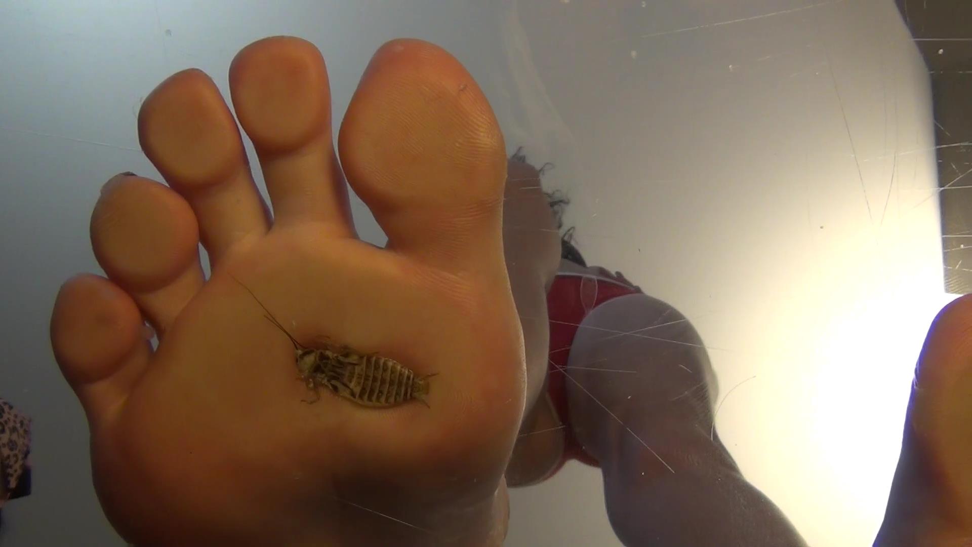Mitzy is at home watching her little brothers, who mind you, are supposed to be exterminating the big infestation that has been going on in their kitchen. Her brothers also have some kind of infatuation with Mitzy's feet, and she tries to get them to stop but they don't listen. When Mitzy sends them back to the kitchen, they unexpectedly shrink! Mitzy goes to the kitchen to check on them, unbeknownst to Mitzy, her brothers are shrunken and she has already squished one! She has her sandals on now and has noticed they haven't gotten rid of the bugs at all so Mitzy decides it's time for her to take matters into her own hands, or feet you could say. She starts to crush and pulverize the bugs, and really enjoying it. They're everywhere! But little does Mitzy know, her brother is a witness to her brutality! When she does notice him, she has already taken off her sandals and her feet are covered in guts. She tells him that THIS is what happens when they don't listen to her! She crushes another brother! Mitzy is pissed! When she finally finds the last brother, she shows him the crushed brother, and then makes him lick the guts of her victims off the bottom of her soles!