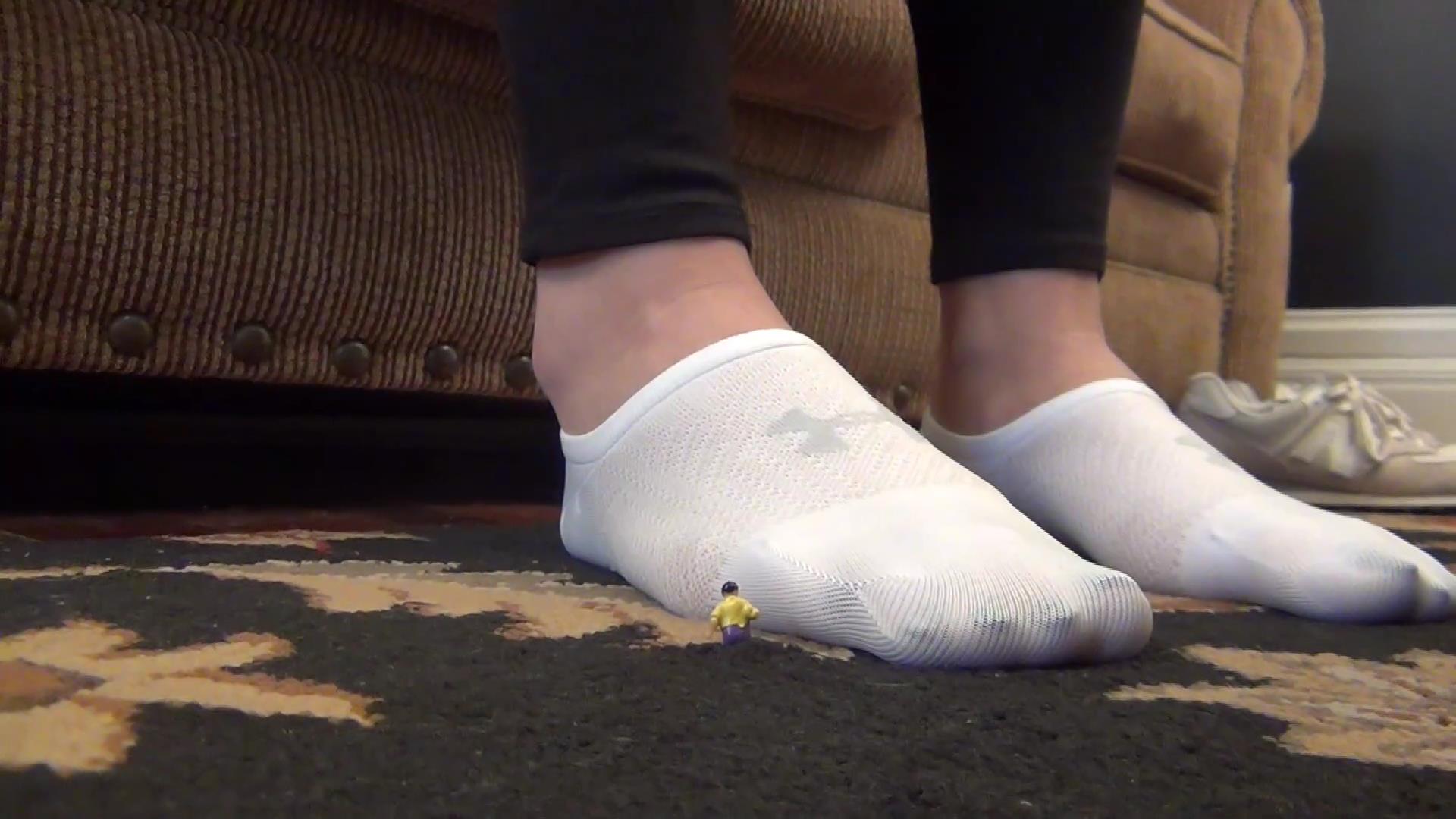 Riley is coming to see her nephew Daniel today, shes got to babysit him. Riley is completely unaware that he is shrunken and very tiny. Riley starts calling out to him, but theirs no response! He is sitting on the couch in hopes that she will spot him. He is looking up at her ass, and is trying to get her attention but Riley ends up sitting on him, she notices the couch is very lumpy feeling. She stands up and dust the couch off, not knowing she knocked her nephew off too! Now he is at her feet on the floor, Riley then starts rubbing her stocking feet together not knowing what she's rubbing but it feels so good! Riley then sits on the floor and looks what shes rubbing her feet on, thinking its a small toy, she then picks it up, it looks like a piece of candy!! Even though this candy looks different from the others! Riley then thinks about tasting it! She doesn't really know yet because she rubbed her feet all over it. Riley then holds this piece of "candy" up against a piece of cereal. They defiantly look different but Riley pops it in her mouth anyways, as she sucks and licks on it. It has a wonderful flavor to it. She then pulls it back out, and she thinks shes going crazy because it almost looks like her nephew Daniel! Riley continues to suck and lick, and deciding on eating and swallowing it, because it just tastes so good! She then hovers it over her mouth, as she thought she heard something, Riley then wastes no time and swallows little Daniel to his doom! Riley has no idea what she had just done!