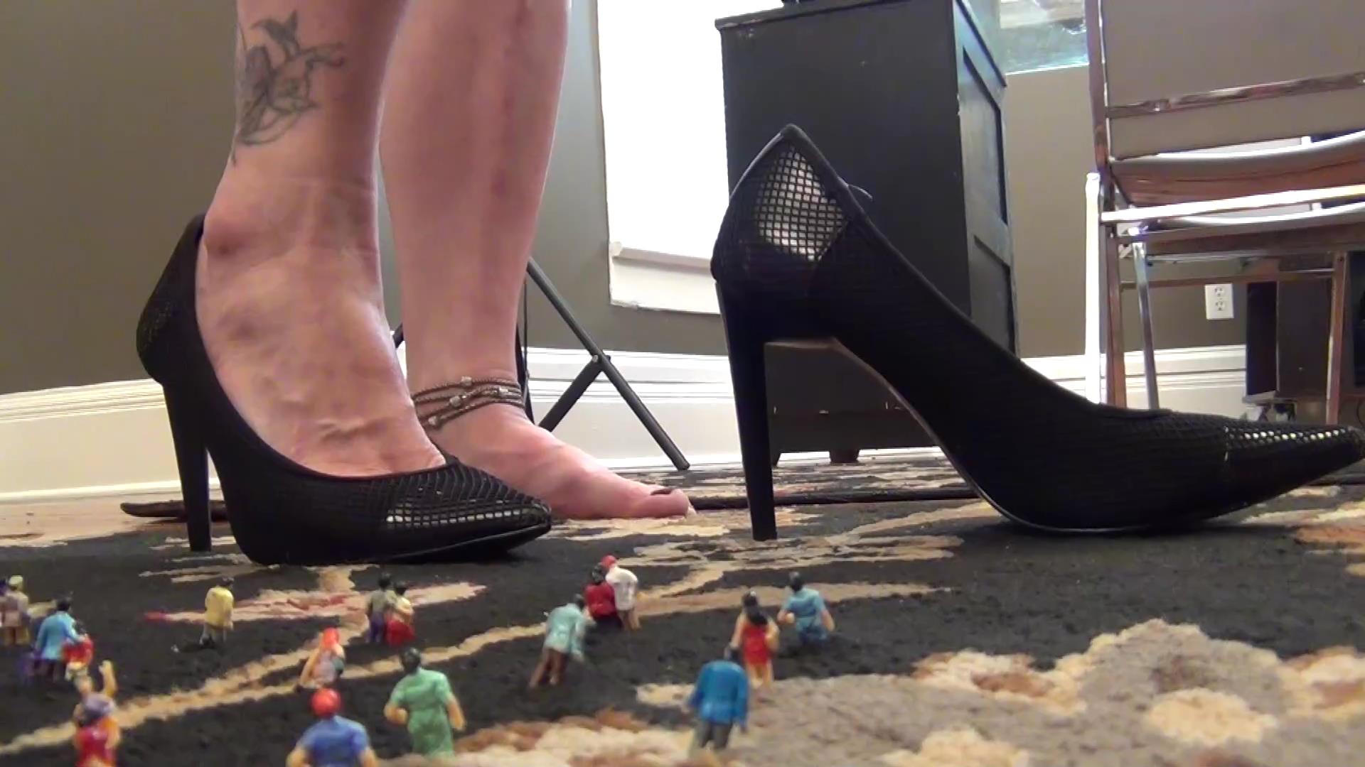 Candice, a towering giantess and therapist, had a unique approach to her sessions. Today, her client, a tiny man, brought in his dream journal—an extensive list of vivid dreams he’d been experiencing. The session was unlike any other, as Candice, with her calming presence, guided him into a deep trance. Shrunk down to a minuscule size for the session, her client was now no larger than an insect, sitting on the glass table in front of her. As she read the description of his dreams, Candice couldn’t help but notice a recurring theme: many of his dreams involved her, or rather, her immense size. One particularly unsettling dream stood out to her—he had dreamed of her towering above him, her giant feet slowly crushing him like a cricket under her foot. He described the terrifying sensation of being small and vulnerable beneath her massive, unrelenting soles. Candice, always professional, responded thoughtfully. “It’s not unusual to have dreams where you feel small, or overwhelmed by someone in a position of power,” she explained, her voice gentle but with a tinge of curiosity. Meanwhile, Candice’s focus on the session didn't waver, but her own hands were busy, seemingly absent-minded. She was crushing crickets with her big feet—an activity she often did to relax while reflecting on her clients' words. In her office, the glass table became the surface for this unusual habit. A zip-lock bag full of crickets sat nearby, and Candice, without thinking, casually crushed one at a time, crushing them beneath her giant feet, the tiny creatures squishing under her enormous soles. As her client, still in his trance, described his dream of being crushed, Candice’s massive foot came down once again, pressing the crickets with a satisfying crunch. The sound of the crickets' bodies breaking beneath her feet was almost rhythmic as she continued with the session, her gentle movements contrasted by the crushing weight of her size. To her, it was an ordinary action—something she did to unwind—but for her client, still in his tiny form, it felt surreal, the powerful motions of her feet making him feel even smaller and more vulnerable than before. Candice noticed the client was enjoying every moment of this. “You may feel trapped or powerless in some of these dreams," she said, her tone still soothing. As the session continued, Candice’s calming presence and the rhythm of her actions—her gentle crushing of crickets—seemed to merge in a way that made the tiny man feel both terrified and oddly comforted, as though the very thing he fantasized was also something he needed to confront in order to move past his dreams. (Candice also crushes without the bags in the video under glass)