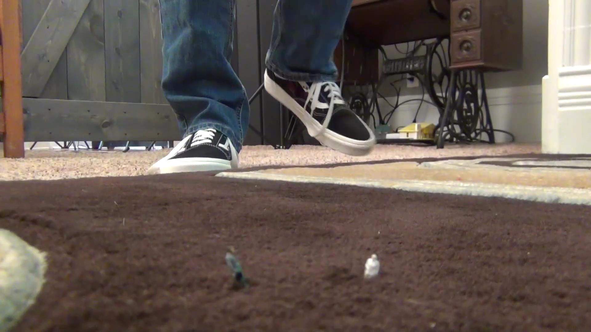 Cinnamon and Kookie walk into the living room not realizing, they are stepping on a tiny man, that had shrunk him self down on purpose to fulfill his fantasy! They start stepping on him with there big bare soles unaware at first! Kookie then suddenly feels something under her big sole, as he looks up at two beautiful giantess! They end up picking him up and start asking him if he has a foot fetish! He tells them he defiantly does and they take him to the couch! They then start rubbing his tiny face and body all over there big bare soles, mushing his tiny face into there feet! Encouraging him to lick and worship them and tell them how much he's enjoying it! After awhile they then force him to cum after he does he shrinks even smaller! They then place him on the glass table, and start massaging him with there big feet squishing him hard! Cinnamon then tells Kookie to glue him to her foot! Kookie then licks on him and gives Cinnamon a foot worship with him on it, drenching him in saliva! Watch Kookie and Cinnamon have fun with there new tiny toy!
