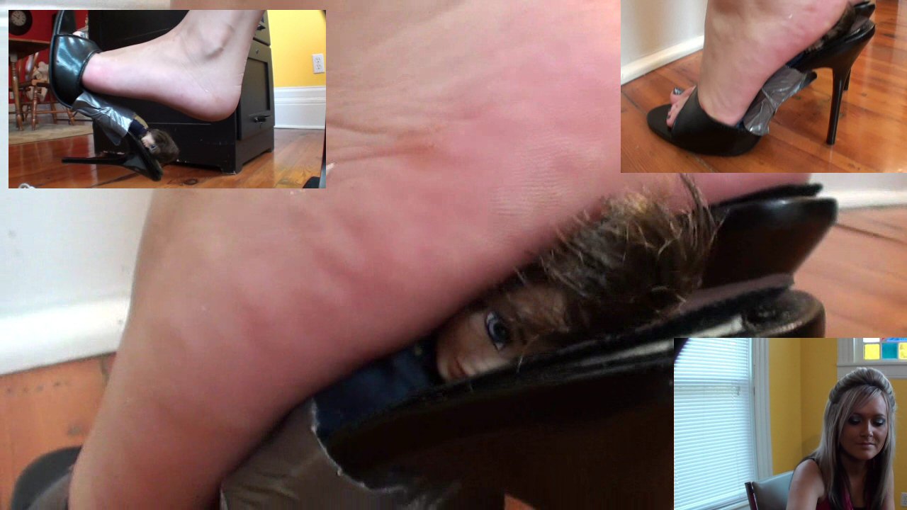 Whitney checks her class roll and notices a couple of students are absent today. But, they're in class, they have shrank themselves to get a great view of their teacher's smelly stockinged feet! Ms. Whitney is concentrating on grading papers and doesn't notice one tiny boy at her feet. She plays with him in between her stockinged toes. She stands to look out of the window unknowingly of her students at her stockinged feet. When she finally notices one of the students, she picks his tiny body up and she asks him about being so small. He admits to loving her feet, and she's flattered by his crush. She gives the tiny student his wishes and takes him into the Teacher's Lounge with her. But she finds another student has shrank himself as well!! He has been hiding around her, admiring her smelly feet. So, Ms. Whitney lets them play a round of Hide-and-Seek, but when one gets accidentally crushed by her big feet, Ms. Whitney has to crush her tiny favorite students, hoping no one comes asking questions! (in reg.res)