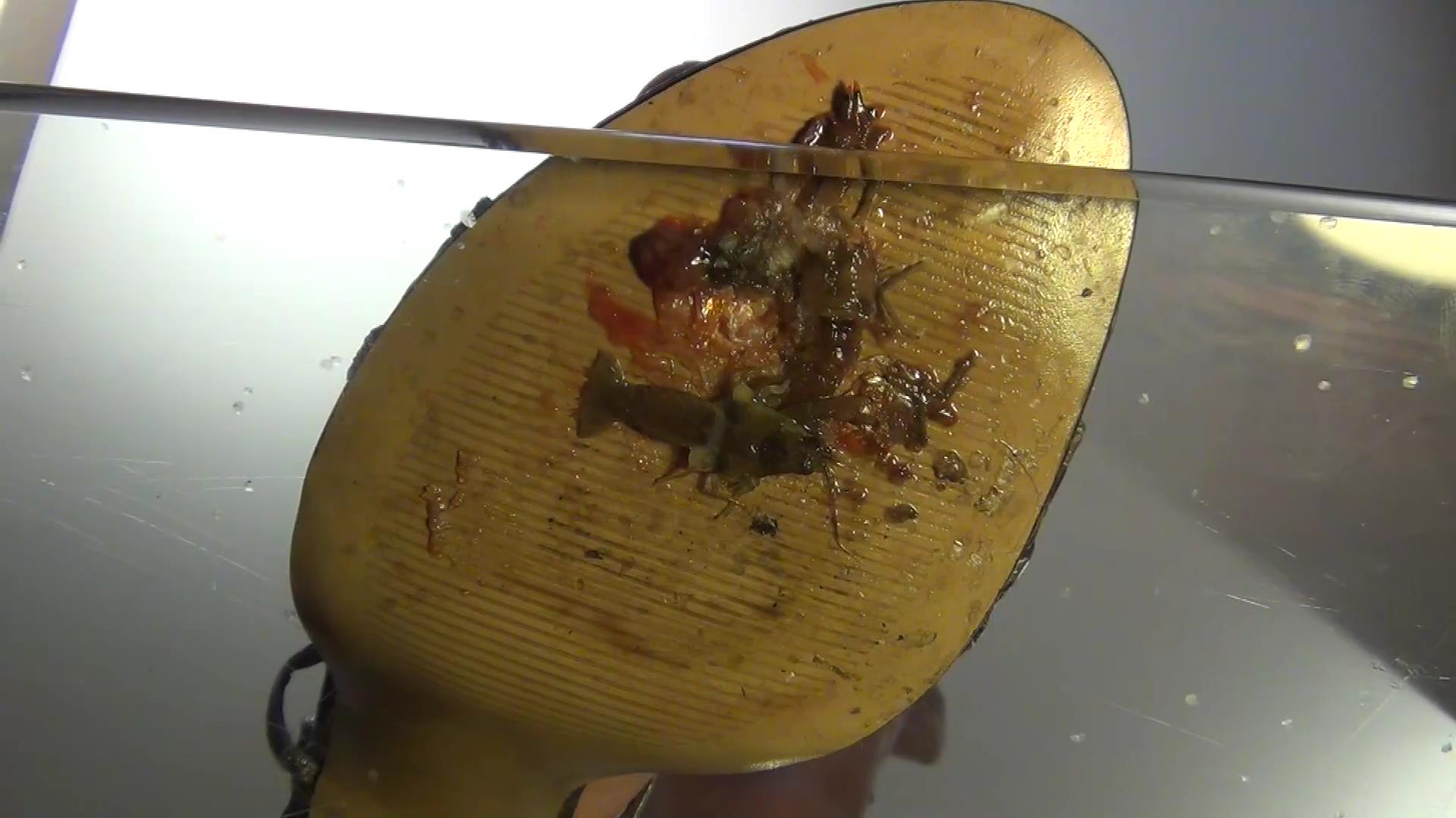 Krystal is on the glass table ready to smash her victims under her soles. She has some craw daddies and meal worms. She uses the ball and heel of her foot so squish them. She teases them a bit asking if it hurts or if there scared. She likes to crush some slowly making them suffer more before theres nothing left but wet guts stuck to the bottom of her foot. 'PC'