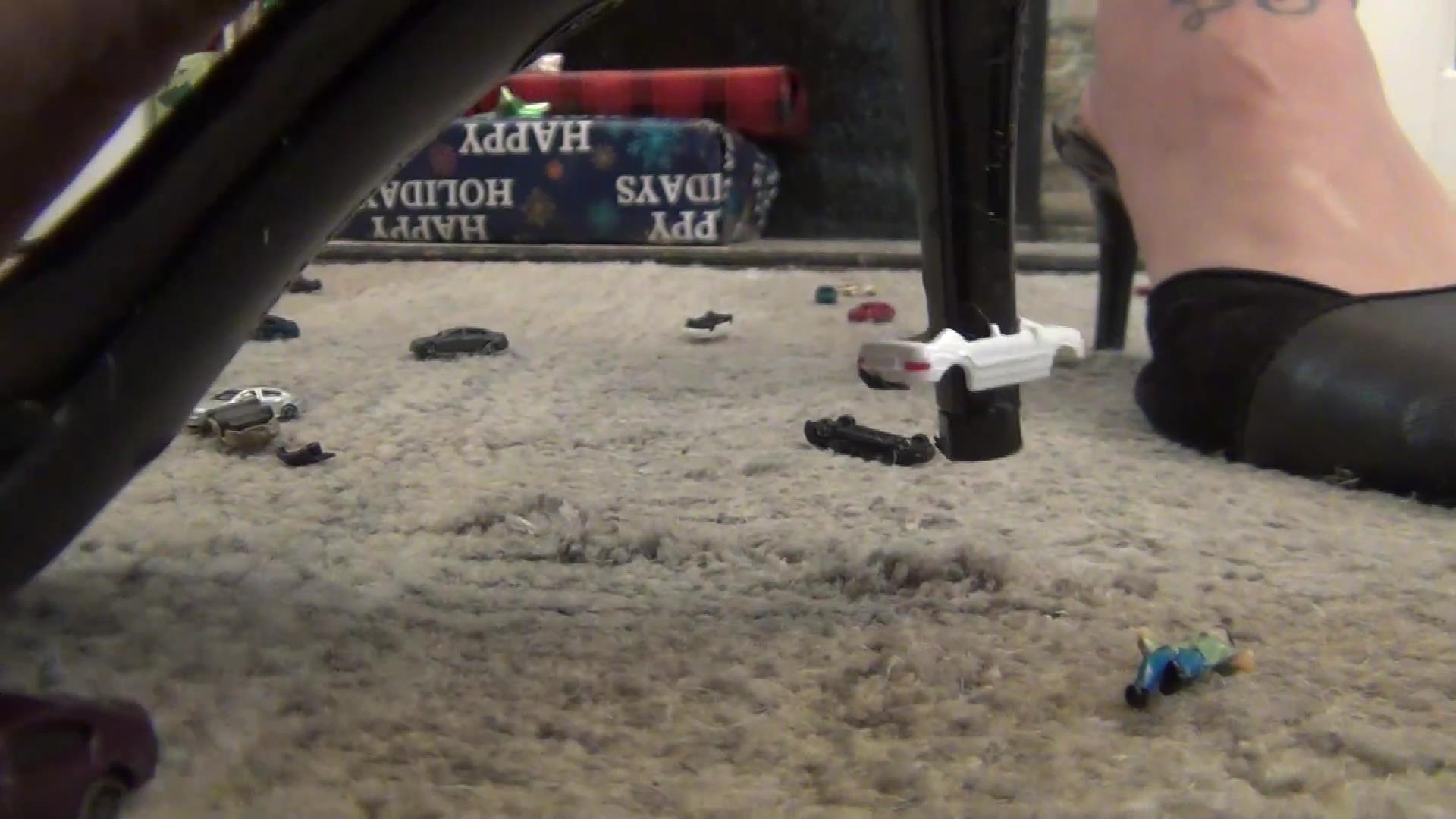 Krystal is my gentle and cruel step sister who loves to humiliate me and stepping on my model toys. I am her stress relief. She finds me shrunken down on the ground with all my toy cars and she starts to step on them with her shoes, forcing me to watch. She than continues to walk all over them bare foot, grinding my cars slowly under her bare soles. Krystal loves the power trip. Krystal than sits on the floor and gathers all the cars with her feet and starts to rub them all together she does this until i cum. She than places her feet over the junkyard for her final massage she press on me until i pass out.