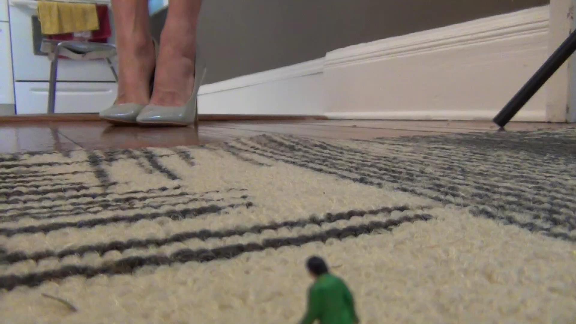 Aunt Kookie is on her way to her nephew Timo for a surprise visit! He is a scientist and is currently inventing a shrinking remote. He tests the shrinking device on himself and shrinks to the size of a toy! However, his aunt arrives and starts calling out for him. She kicks out of her shoes and walks around looking for him. He tries to get her attention, but gets stepped on and is now on her sole stuck! She sits down on the couch waiting for her nephew. He starts getting a hard on and cums on her sole which draws her attention. She looks and thinks its just a small toy stuck to her foot as she then uses that "toy" to rub her sole with! She then throws it to the ground as she starts trampling and rubbing her foot all over it! He starts screaming for help but Kookie cant hear him because he is so small! She then finds the shrinking device as she starts playing with it not knowing it has shrunk him even smaller! What happens after Kookie has messed with the device?! Poor tiny nephew has got himself into big trouble now!