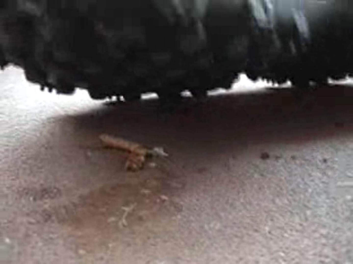 Krystal is outside in her car, today she has something to do which is new and different for her but shes very excited about it! She steps out leans up against her tire as she lights her cigarette! She then takes a couple crickets as she starts burning them slowly against the hot cigg, watching closely as they fry! She giggles and gets back in the car as she has her helper Makayla bring a bag of goldies and craws inside and tells her to place the baggie under her car tire! She then slowly runs them over with her heavy tire as she laughs and watches them go down in pain and misery! She then gets handed a bottle of cricks inside as Krystal spits inside the bottle and caps it off stirring them around in it, she then has Makayla place the bottle in front of her tire as she watches them all hurry to the front as the bottle gets squished flat including them, it makes Krystal so hot watching all of this! She loves doing car crushes, watch Krystal use her heavy tire on all her useless victims! 'PC'