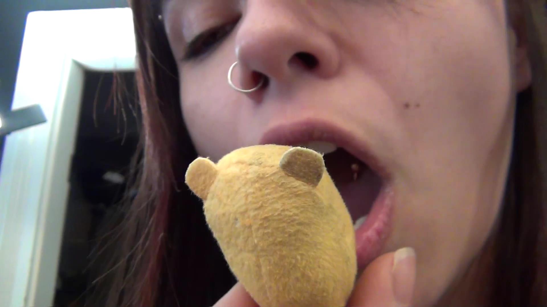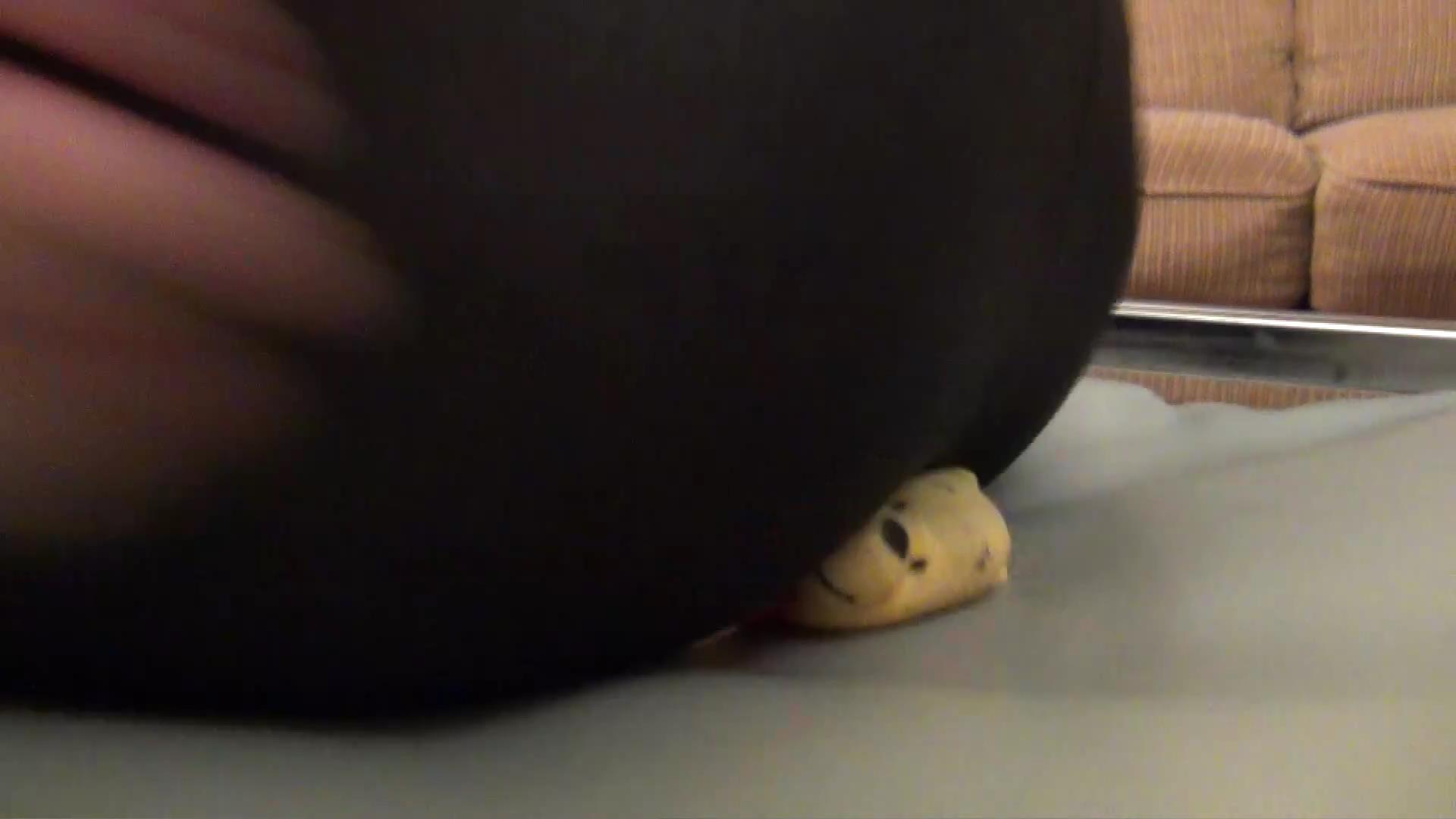 Candice and Mitzy, our pretty little Asians at SSF, have pooh today and they're ready to give him a piece of their mind. They start by blowing their stinky breath in his face, even putting his whole body in their mouth! After they feel like he's inhaled enough of their stinky breath they take him to the chair and give him hard butt crushes, so hard that they break the chair! To finish pooh off, the stomp him out. The girls take turn with pooh until he's a flat yellow stain!!!