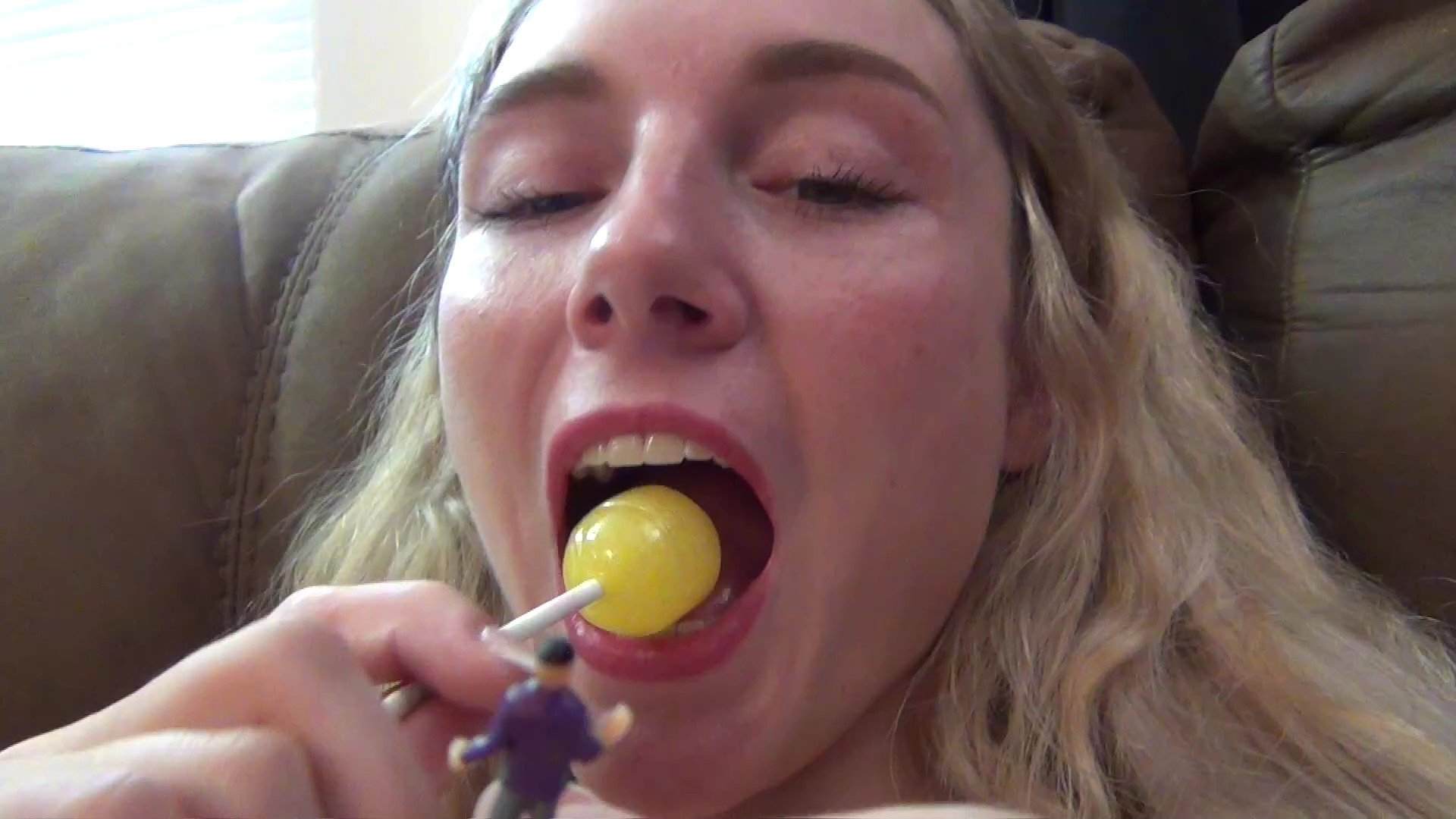 Krystal's step brother is about to leave, as soon as Krystal arrives back home. She see's that he is going to leave as she pulls out a shrink ray, shes been waiting to do this for awhile, as he shrinks very small. Krystal then picks him up off the floor. She then holds him in between her fingers as she starts sucking and licking on her lollipop! She glares at him and tells him that she can tie him to a Popsicle stick after she finishes her lollipop and suck on him the rest of the day. She ties him to the stick as starts licking and sucking on her step brother! She notices he has gotten hard by this, Krystal actually loves this and teasing him for it. Krystal then thinks its time to be in her tummy now. She takes him off the stick as she teases him dropping him into her mouth, telling him he will be just fine and once he comes out they both will think of new challenges next time!